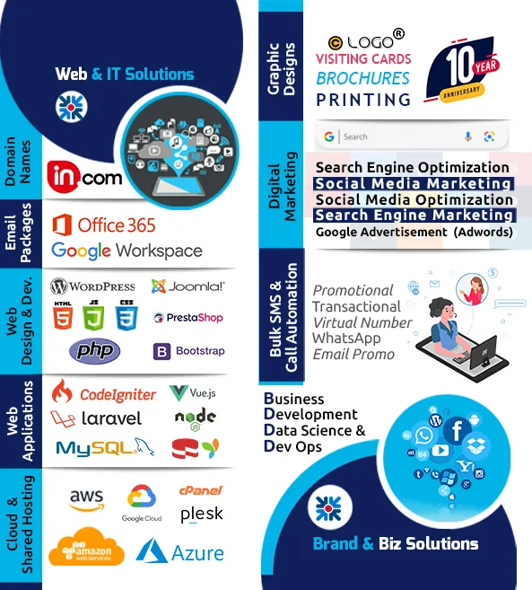 We are expert IT professionals with a decade of legacy in Web Development Graphic Designing Digital Marketing Cloud Services Business Development Bulk SMS Call Automation Data Science Dev Ops.